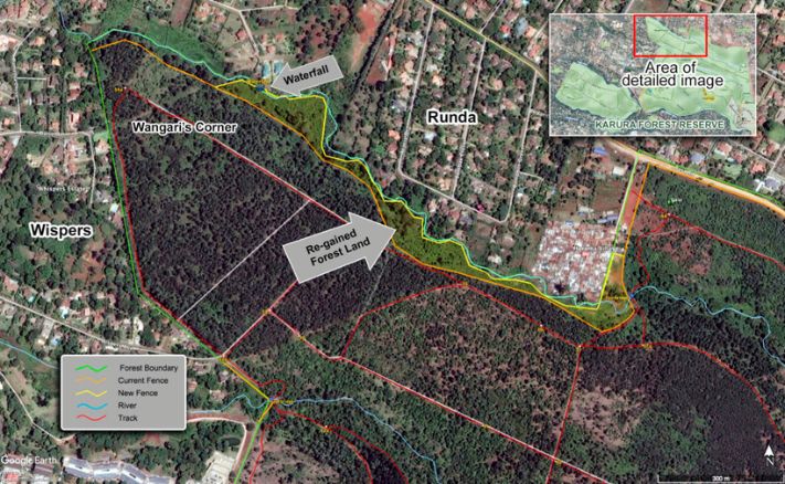 When the Friends of Karura Community Forest Association was formed in 2009, the first job was to secure the perimeter by raising CSR (corporate social responsibility) funding for some 10 km of electric fence (half the forest perimeter, the other was already protected by upmarket northern Nairobi house security fencing).